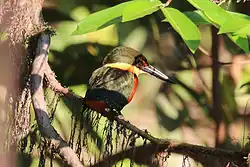 | A female American pygmy kingfisher in Costa Rica. Chloroceryle aenea is the type species. | |