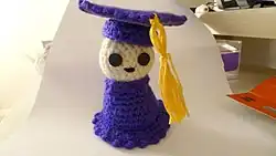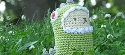 Amigurumi (Japanese: 編みぐるみ; lit. "crocheted or knitted stuffed toy") is the Japanese art of knitting or crocheting small, stuffed yarn creatures. The word is a compound of the Japanese words 編み ami, meaning "crocheted or knitted", and 包み kurumi, literally "wrapping", as in 縫い包み nuigurumi "(sewn) stuffed doll".[1] Amigurumi vary in size and there are no restrictions about size or look.[2] While the art of amigurumi has been known in Japan for several decades, the craft first started appealing to the masses in other countries, especially in the West, in 2003.[3] By 2006, amigurumi were reported to be some of the most popular items on Etsy, an online craft marketplace, where they typically sold for $10 to $100.[3]