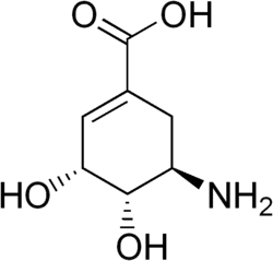 - ^ Guo, Jiantao; Frost, John (2004). "Synthesis of aminoshikimic acid". Organic Letters. 6 (10): 1585–1588. doi:10.1021/ol049666e. PMID 15128242.