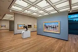 The collection was built on portrayals of the Old West by Frederic Remington and Charles M. Russell, artworks depicting nineteenth-century expansionism and settlement of the North American continent, and masterworks that are emblematic of major turning points in American art history. The "full spectrum" of American photography is documented by 45,000 exhibition-quality prints, dating from the earliest years of the medium to the present.[2] A rotating selection of works from the permanent collection is on view year-round during regular museum hours, and several thousand of these works can be studied online using the Collection tab on the Carter's official website. Museum admission for all exhibits, including special exhibits, is free.