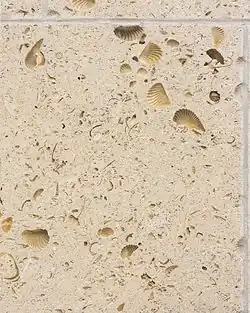 Johnson designed a two-story portico with five arches that faced east toward the city's skyline. The arches and their tapered support columns were clad in creamy Texas shellstone. The remaining three sides of the 20,000-square-foot building were also covered with shellstone cladding. Sheltered by the arched portico, the museum's front wall consisted of a two-story curtain of glass windows with bronze mullions.[35] Johnson identified Florence's Loggia dei Lanzi and Munich's Felderrnhalle as precedents for the "boxes with fronts" style portico.[54] The main entrance lead directly into a two-story hall adorned with the same type of shellstone used on the exterior, teak wall coverings, and a floor of pink and gray granite. Beyond the main hall were five small galleries of equal size for the display of art. On the mezzanine level were five similar galleries, each with a balcony that overlooked the main hall. These mezzanine galleries served as library and office spaces.[35] To take advantage of the expanse between the two-story portico and the site's eastern boundary, Johnson designed a series of broad steps and terraces extending away from the building, with an expansive sunken, grassy plaza as the centerpiece, pointing toward the city's center.[36]
