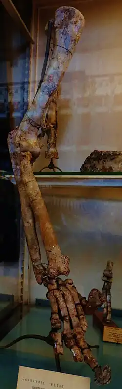 25. ^ Orcutt, John D.; Calede, Jonathan J.M. (2021). "Quantitative Analyses of Feliform Humeri Reveal the Existence of a Very Large Cat in North America During the Miocene". Journal of Mammalian Evolution. 28 (3): 729–751. doi:10.1007/s10914-021-09540-1. S2CID 235541255.