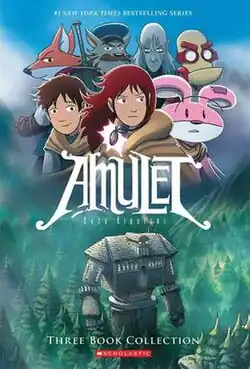 Amulet is a children's fantasy, adventure, graphic novel series written and illustrated by Kazu Kibuishi[1] and published by Scholastic Corporation. Beginning in 2008 with The Stonekeeper, the series was published by Scholastic under their Graphix imprint. The nine-volume series has received critical acclaim for its storytelling and visuals, appealing to both young and older audiences, and has been featured on the New York Times bestseller list. A Netflix adaptation is in development.