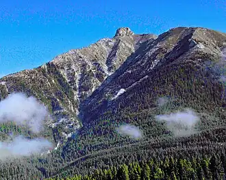 Anûkathâ Îpa (Stoney: Anûkathâ Îpa, pronounced [ˌanũˈkʰaθã ĩˈpʰa],[5][6][a] lit. transl. 'Bald Eagle Peak', sometimes written in English language sources as Anû Kathâ Îpa[7][b]) is an outlier of Mount Charles Stewart in the Canadian Rockies of Alberta. It is one of the most prominent landmarks in the vicinity of Canmore, Alberta.