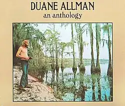 An Anthology is a compilation of recordings featuring guitarist Duane Allman. The double album consists of a selection of songs by various artists that Allman contributed to as a session musician, along with early recordings by his band the Hourglass and his partial-namesake group, the Allman Brothers Band.[5] The album also features rare solo work by the guitarist.[5] It reached number 28 on the Billboard albums chart.[6]