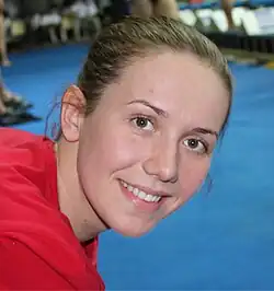 Anastasia Valeryevna Fesikova (Russian: Анастасия Валерьевна Фесикова; born 8 May 1990), née Anastasia Zuyeva, is a Russian swimmer who holds the Russian national records for the 50, 100 and 200 metres backstroke events. She swam for Russia at the 2008 Olympics,[2] the 2012 Olympics and the 2016 Olympics. At the 2012 Olympic Games, she won a silver medal in the 200 m backstroke.