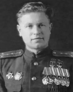 1. ^ Shkadov, Ivan (1987). Герои Советского Союза: краткий биографический словарь I, Абаев - Любичев. Moscow: Voenizdat. p. 203. OCLC 247400108.