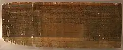 | Kahun Gynaecological Papyrus | Kahun Papyrus, Kahun Medical Papyrus, or UC 32057 | c. 1800 BC | Hieratic | Medicine, Obestitrics & gynecology, pediatrics and veterinary medicine | The text is divided into thirty-four sections that deals with women's health—gynaecological diseases, fertility, pregnancy, contraception, etc. The later Berlin Papyrus and the Ramesseum Papyrus IV cover much of the same ground, often giving identical prescriptions | N/A | El-Lahun by Flinders Petrie in 1889 | University College London | 2 gynecologic papyri & 1 veterinary payrus |