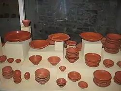 Display of South Gaulish samian plain vessels, illustrating standardisation of size -