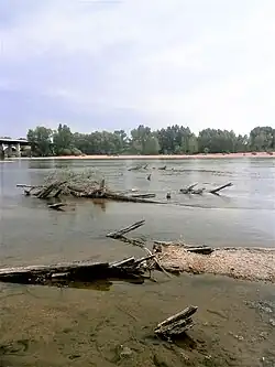 In 1978, the lowering of the Loire's water level revealed a series of stakes embedded in the riverbed, extending from the upstream side of Île Aucard, situated in the eastern part of Tours, towards the southern bank. In 1985, the hypothesis of a bridge crossing the Loire in the Late Roman Empire was proposed, but natural changes in the riverbed prevented further observations.[8] The remains reappeared several times from 2000 onwards across most of the riverbed between Île Aucard and the southern bank, except for the crossing of the island and the narrow channel separating it from the northern bank, which escaped investigation.[Tam 9]