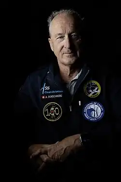 André Borschberg (born 13 December 1952) is a Swiss entrepreneur, explorer, pilot, and professional speaker. He is the co-founder and CEO of Solar Impulse.[1] In July 2016, he co-piloted and successfully completed the first manned solar-powered flight to circumnavigate the Earth.[2]