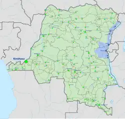Military situation of the First Congo War in December 1996: AFDL in blue and Zaire in green.