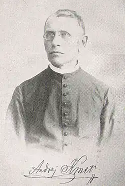 Andrej Kmeť (19 November 1841, Bzenica – 16 February 1908, Martin) was a Slovak Catholic priest, botanist, ethnographer, archaeologist, and geologist.[1] He was a founder of the Slovak National Museum. Several species of fungi and plants have been named after him.