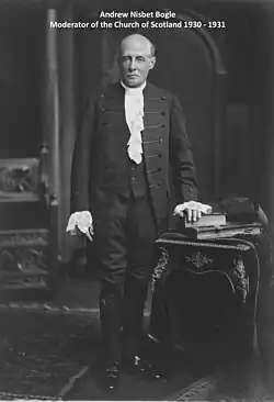 Andrew Nisbet Bogle (28 June 1868 – 5 August 1957) was a Scottish minister of the Free Church of Scotland who moved to the Church of Scotland as an administrator and then served as Moderator of the General Assembly of the Church of Scotland in 1930.[1]