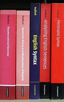 Andrew Radford (3 July 1945 – 16 December 2024[1]) was a British linguist known for his work in syntax and child language acquisition. His first important contribution to the field was his 1977 book on Italian syntax, a revised version of his doctoral thesis.[2] He achieved international recognition in 1981 for his book Transformational Syntax, which sold over 30,000 copies and was the standard introduction to Chomsky's Government and Binding Theory for many years; and this was followed by an introduction to transformational grammar in 1988,[3] which sold over 70,000. He has since published several books on syntax within the framework of generative grammar and the Minimalist Program of Noam Chomsky, a number of which have appeared in the series Cambridge Textbooks in Linguistics.