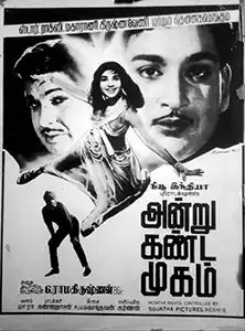 Andru Kanda Mugam (transl. The Face I Saw That Day) is a 1968 Indian Tamil-language thriller film, directed and produced by G. Ramakrishnan. Music was by K. V. Mahadevan. The film stars Ravichandran and Jayalalithaa, with S. A. Ashokan, Nagesh, Manorama, V. K. Ramasamy and Major Sundarrajan in supporting roles.[1] It was released on 15 January 1968.[2]