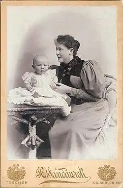 On 3 June 1896 Grodyński married Alicja Matter,[14] the daughter of Alfons, a renowned builder, businessman and councillor in Cieszyn who was also a member of the Association of Silesian Catholics[15] and who also supported the opening of what was the first recognized "Polish School" in Cieszyn.[16] In 1897 Grodyński was appointed as a judge in Jabłonków where he moved with Alicja before relocating again in 1903 to take up the position of head of court in Strumień (where Oskar Zawisza became the local priest). In 1907 he transferred[17] to the District Court in Cieszyn, in which city he continued to reside (at 34 Bielitzerstrasse now Bielska street) even after his later appointment as President of the Court of Appeal in Katowice.