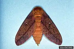 The larvae mainly feed on various oak species, including Quercus palustris. They feed in tight groups throughout their development. Fully grown caterpillars pupate and overwinter in shallow underground chambers. Adults do not feed.[1]