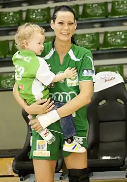 Anita Görbicz (born 13 May 1983) is a Hungarian former professional handballer.[1][2] She is widely regarded as one of the best handball players of all time, and was voted IHF World Player of the Year in 2005 by the International Handball Federation.[3][4] Görbicz has also been given the nickname the Queen of Handball internationally.[5][6][7]