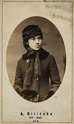 Anna Bilińska (pronounced: [ˈanna biˈliɲska] also known as Anna Bilińska-Bohdanowicz; 8 December 1854 – 8 April 1893) was a Polish painter, known for her portraits. A representative of realism, she spent most of her life in Paris, and is considered the "first internationally known Polish woman artist."[1]