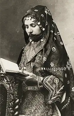 ![]() Anna Hormouz in the traditional Armenian dress of Salmas, circa 1860 | |