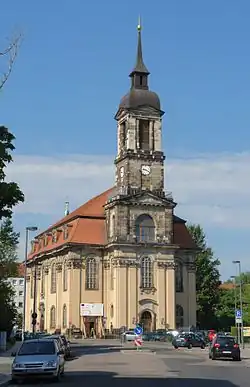 Anne's Church (German: Annenkirche) is named in honour of Anne of Denmark, Electress of Saxony. The original 1578 church was destroyed by Prussian troops in 1760 during the Seven Years' War. The new church was opened in 1769.