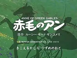 Anne of Green Gables (Japanese: 赤毛のアン, Hepburn: Akage no An; lit.'Red-haired Anne') is a Japanese animated television series and the fifth entry in Nippon Animation's World Masterpiece Theater franchise. It was adapted from the 1908 novel Anne of Green Gables by Lucy Maud Montgomery. Produced by Nippon Animation in 1979, it was first broadcast on Fuji TV from January 7 to December 30. Fifty episodes were produced in total.[1] The first six episodes were later edited into a compilation film released in 2010.