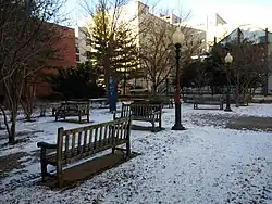 Anniversary Park is an urban park located at the south end of the George Washington University campus, on F St NW, between 21st and 22nd St NW, in Washington, D.C. The park commemorates George Washington University's 175th anniversary and contains benches, a garden and grills.[1] It had a dedication ceremony in October 1997 with a dedication from former DC mayor Marion Barry.[2] As part of the GW Alumni Brick Program, bricks for the class of 1996 are located in Anniversary Park.[3] There is also a memorial plaque and flowers for alumni who were killed in the September 11, 2001 terrorist attacks.[4]