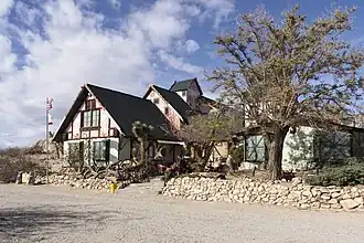 The museum was originally constructed by homesteader/artist H. Arden Edwards in 1928. The chalet-style structure was built over the rock formation of Piute Butte in the Mojave Desert. The unusual folk art structure, originally used as a home, is listed on the National Register of Historic Places.[2]