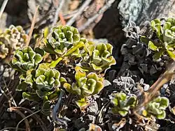 Antennaria suffrutescens is a species of flowering plant in the family Asteraceae known by the common names evergreen pussytoes and evergreen everlasting.[1] It is native to southwestern Oregon (Curry + Josephine Counties) and far northeastern California (Humboldt + Del Norte Counties).[2][1] It grows in coniferous forests in the mountains, sometimes on serpentine soils.[3]