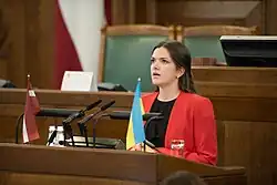 In the 2018 parliamentary elections, she ran unsuccessfully as the number one candidate in the Riga constituency.[8] She was also not elected in the 2019 European Parliament elections, where she ran as the number three candidate in the party list.[9] On 14 September 2019, together with Edmundus Cepurītis, she was elected co-chair of the Progressives party.[10]