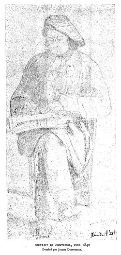 Among the cafes he frequented was the Café Momus, where "Champfleury, Courbet, Baudelaire and Chintreuil were constantly to be seen."[12] Chrintreuil was "a puny-looking, timid, somewhat awkward figure, silently puffing smoke from a long pipe,"[13] wearing his "faithful red jacket."[14] Chintreuil is mentioned by name in Murger's private correspondence from this period. One anecdote relates how the Water-Drinkers pooled their scanty resources to set up an emergency fund.