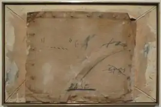 The paintings produced by Tàpies, later in the 1970s and in the 1980s, reveal his application of this aesthetic of meditative emptiness, for example in spray-painted canvases with linear elements suggestive of Oriental calligraphy, in mixed-media paintings that extended the vocabulary of Art informel, and in his oblique allusions to imagery within a fundamentally abstract idiom, as in Imprint of a Basket on Cloth (1980).[8] Among the artists' work linked in style to that of Tàpies is that of the American painter Julian Schnabel as both have been connected to the art term "Matter".[12]