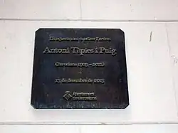 Plaque on the facade Antoni Tàpies' birthplace, 39 Canuda Street, Barcelona