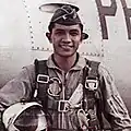 Capt Antonio Bautista (1964) Posing in his flight suit in front of his F86 Sabrejet, seen here wearing the logo of the 6th Tactical Fighter Squadron
