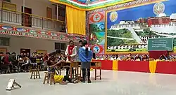 Students perform for teachers on Teachers' Day at Anymachen Tibetan Culture Center