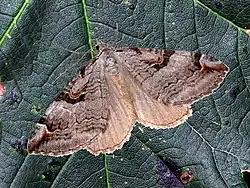 Adults are on the wing from June to August.[6] This species has one generation a year univoltine. The caterpillars are gray-brown, with a white side line and a dark lower edge.[7] The larvae feed on Hypericum species (St. John's worts), such as Hypericum maculatum and Hypericum perforatum.[8]