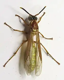 - ^ a b c "Biological Notes on the Parasitism of Apoica flavissima Van der Vecht (Hymenoptera: Vespidae) by Seminota marginata (Westwood) (Hymenoptera: Trigonalidae): Are Social Paper Wasps Primary or Secondary Hosts of Trigonalidae?". 2013. Archived from the original on October 6, 2014. Retrieved September 18, 2014.