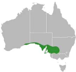 The Aprasia species are noted as one of the most divergent genera from the Pygopodidae family.[3] The Mallee worm-lizard (Aprasia inaurita) is a part of the Aprasia genus which is predominately found in Southern Australia, with the Mallee worm-lizard itself being distributed across a narrow band which stretches from the southeast of Western Australia, across southern South Australia, the northwest corner of Victoria and southwestern New South Wales.[7] The IBRA (Interim Biogeographic Regionalisation for Australia) regions that the Mallee worm-lizard occurs in NSW are the Murray Darling Depression and Riverina regions, with 8% occurrence across New South Wales’ reserves.[2] More specifically, the Mallee worm-lizard has been discovered through the Mallee region between Balranald and Gol Gol with centralised recordings of the Mallee worm-lizard in the Mallee Cliffs National Park area.[2][5] Recordings of the Mallee worm-lizard have also been found in the central mallee region around Pulletop and Gubbata Nature Reserves and around the Scotia Mallee area.[2]