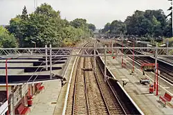 Apsley railway station serves the village of Apsley, on the southern outskirts of Hemel Hempstead, in Hertfordshire, England. It is of two railway stations now serving the town; the other is Hemel Hempstead, just down the line in Boxmoor. The station lies 23 miles (37 km) north-west of London Euston on the West Coast Main Line. Apsley is managed by London Northwestern Railway, which also operates all services that stop here.