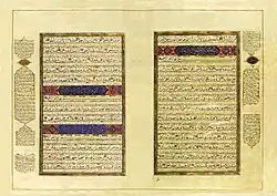 A copy of the Qur'an by Ibn al-Bawwab in the year 1000/1001 CE, thought to be the earliest existing example of a Qur'an written in a cursive script.