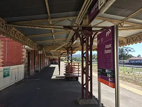 Ararat railway station is located on the Ararat and Western standard gauge lines in Victoria, Australia. It serves the town of Ararat, and opened on 7 April 1875.[2]