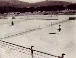 The park's amenities include twelve tennis courts, a baseball field, two softball fields, children's playgrounds, fitness zones, group picnic shelters, outdoor kitchens, horseshoe pits, a senior center, and a community center.[2] Additionally, the Norman Johnson Aquatic Center in the southern section of the park offers two swimming pools and a wading pool. The center is open for recreational swimming and hosts swim lessons for various ages.[3] The southeast corner of the park features a clubhouse and four bowling greens used by the Santa Anita Lawn Bowling Club, previously known as the Arcadia Bowling Green Club. Construction of the clubhouse did not begin until 1947, when the county allocated $30,000 for the project.[4]