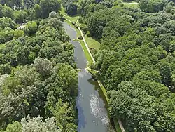 There are three ponds in the eastern portion. To the north, is located Arcadia pond, a man-made clay pit pond.[5][6] From it flows Piaseczno Ditch, which discharges into the ponds in the Royal Baths Park, and into basin of the Czerniaków Port, in the Vistula River.[7]