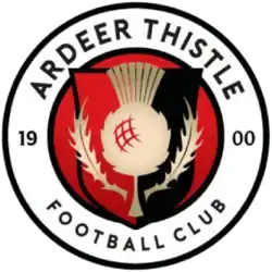 Ardeer Thistle Football Club are a Scottish football club from Stevenston in North Ayrshire.[2] Formed as a Juvenile Club in 1900, they moved up to the Juniors in season 1902–03 and are based at Ardeer Stadium. Nicknamed "The Thistle", they compete in the West of Scotland League Third Division and players wear red and white home kits and sky blue change strips.