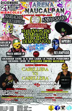 10. ^ "IWRG @ Naucalpan - 39. Aniversario de la Arena Naucalpan". Wrestling Data. December 21, 2016. Retrieved April 23, 2019.