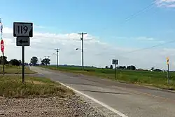 Highway 119 is a state highway of 5.73 miles (9.22 km) that runs in Mississippi County.[1][2] It begins at an intersection with AR 14 in Marie and heads east. After 1.9 miles (3.1 km), it makes a left turn and heads north for about one mile (1.6 km) before turning due east again. It continues east for 1.7 miles (2.7 km) before turning south and ending at an intersection with US 61 in Driver.