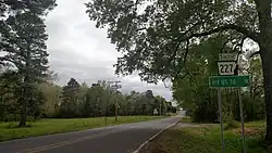 Highway 227 begins at US 70 at Hempwallace. The route winds north through rolling hills through the community of Sunshine before terminating at US 270 west of Royal.