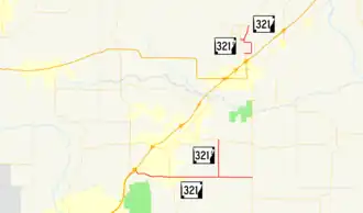 Highway 321 (AR 321, Ark. 321, Hwy. 321) is a designation for two north–south state highways in central Arkansas. One route of 11.20 miles (18.02 km) runs from Interstate 57 (I-57) in Cabot north to Highway 38 east of Austin.[2] A second route of 3.79 miles (6.10 km) begins at AR 31 north of Beebe and runs north to Highway 267.[3]