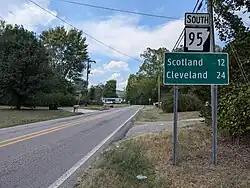 The highway passes through Beverage Town, Scotland and Walnut Grove before entering Clinton. In the city, Highway 95 begins an overlap with U.S. Route 65B (US 65B) heading south. The concurrent routes pass near the Van Buren County Courthouse and Walter Patterson Filling Station, both NRHP-listed properties.[4] US 65B terminates at the parent route, and US 65/Highway 95 run south until Highway 95 splits from US 65 near the Ozark Health Medical Center. The route runs southeast to terminate at Highway 330 near Greers Ferry Lake.[3]